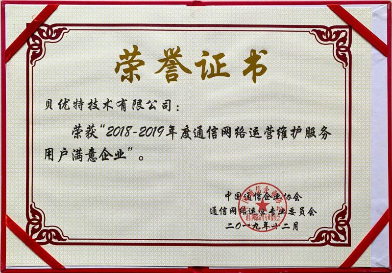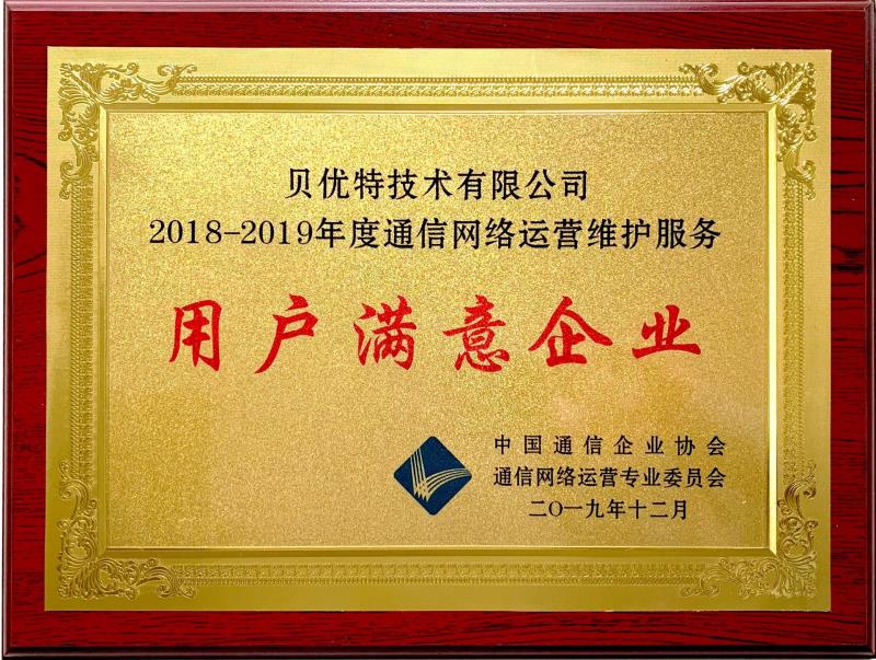 在這辭舊迎新之際,公司喜獲由中國通信企業(yè)協(xié)會、中國通信網(wǎng)絡(luò)運(yùn)營專業(yè)委員會頒發(fā)的”2018-2019通信網(wǎng)絡(luò)運(yùn)營維護(hù)服務(wù)用戶滿意企業(yè)“的榮譽(yù)獎牌及證書。